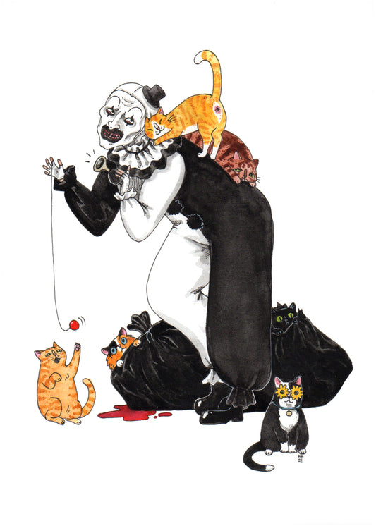 Terrifurrer - Art the Clown from Terrifier Horror Cats Print - Available in 5x7"& 8x10"