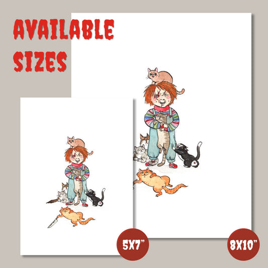 Child's Play with Cats - Chucky with Cats Print - Available in 5x7"& 8x10"