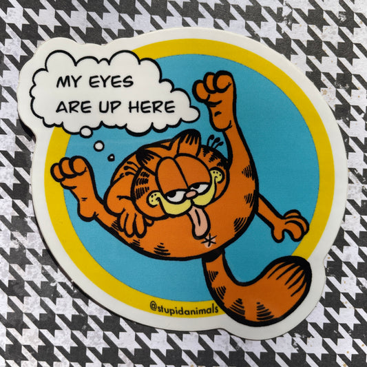 My Eyes are Up Here 3" Garf Orange Cat Parody Vinyl Sticker