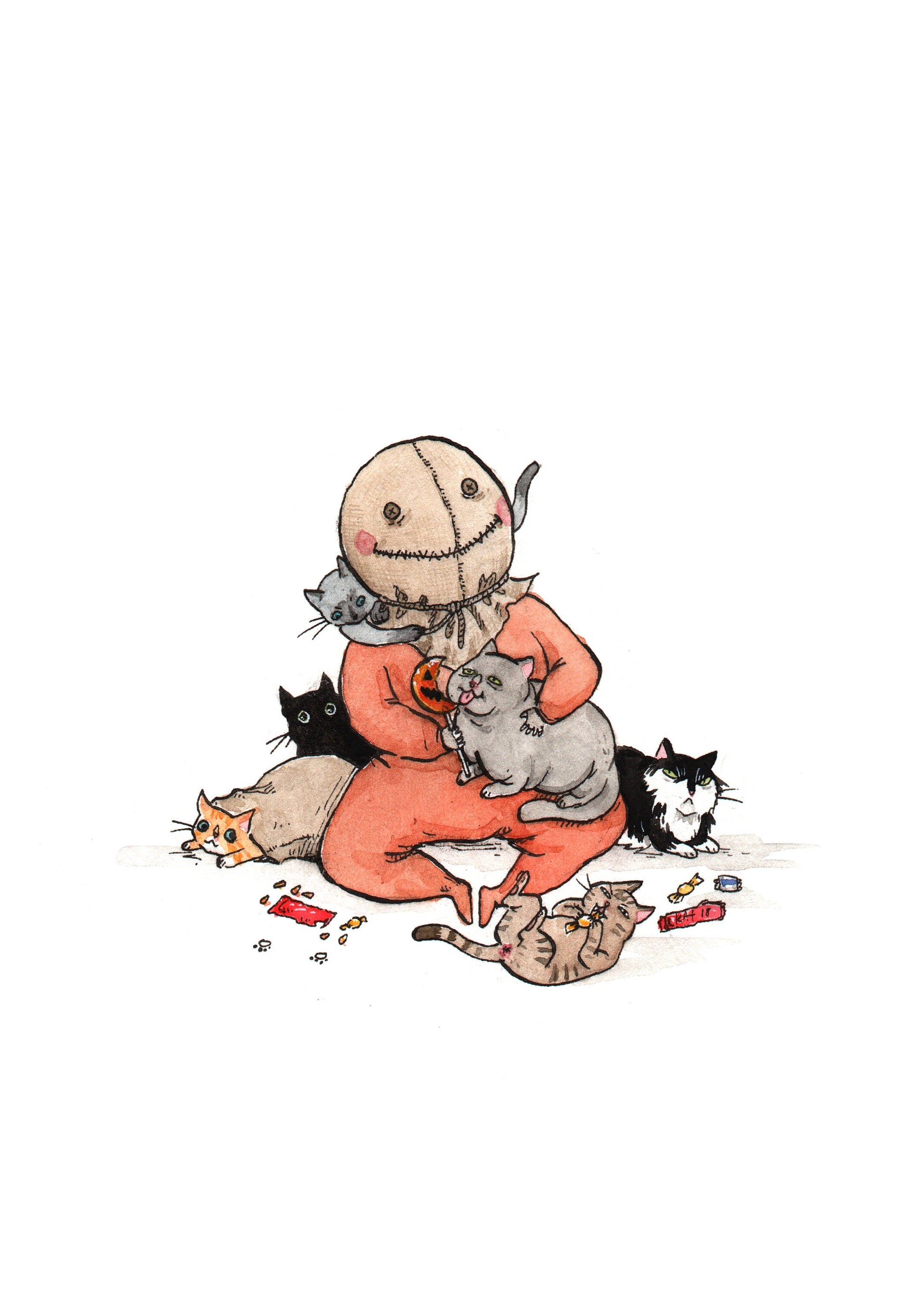 Trick FuR Treat - 5x7" Sam with Cats Halloween Horror Print - Available in 5x7" & 8x10"